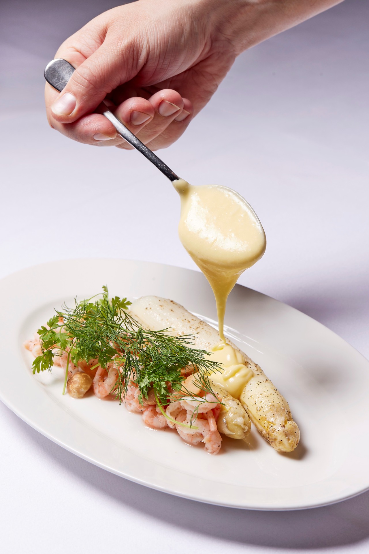 HVIDE ASPARGES & SAUCE HOLLANDAISE REJER & MACADAMIA